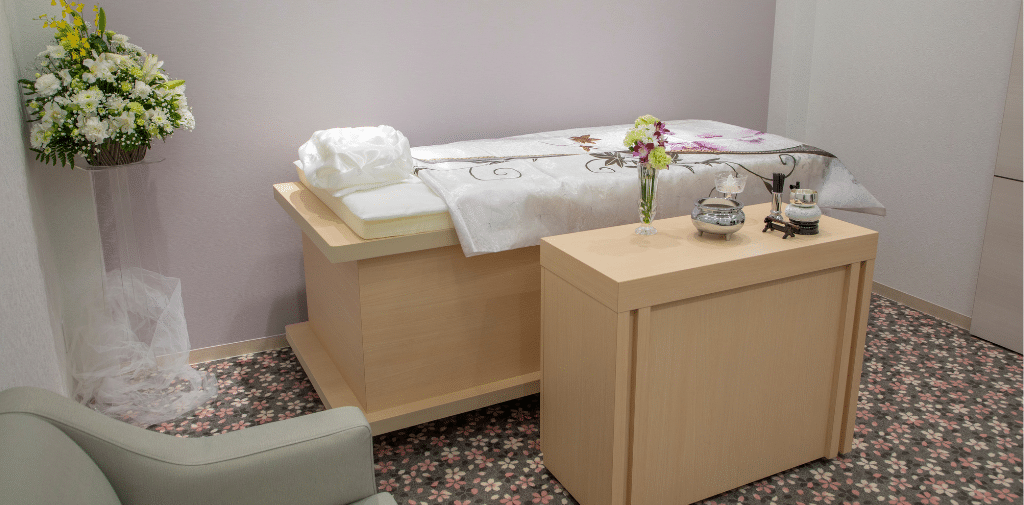 エンバーミングとは亡くなられた方の表情や姿を整え、衛生的に安全な状態でご遺体を保存するための技術です。エンバーミングを施すと、ご遺体の腐敗を心配することなくゆっくりと時間を使うことができるようになります。残される家族は故人とのお別れや葬儀社選びにしっかりと時間をかけることができるようになり、参列者の都合に合わせたスケジュール設定ができるため、後悔の無い納得のご葬儀を実現することができます。ご遺体に1〜2センチの⼩切開をし、ご遺体保全⽤の薬品を動脈から注⼊します。同時に腐敗の原因となる⾎液を静脈から排出し保全薬との⼊れ替えをすることで、体内から防腐をします。